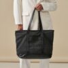 Woodstock Leather Safari Canvas and Leather Two-Tone Tote Bag – Black
