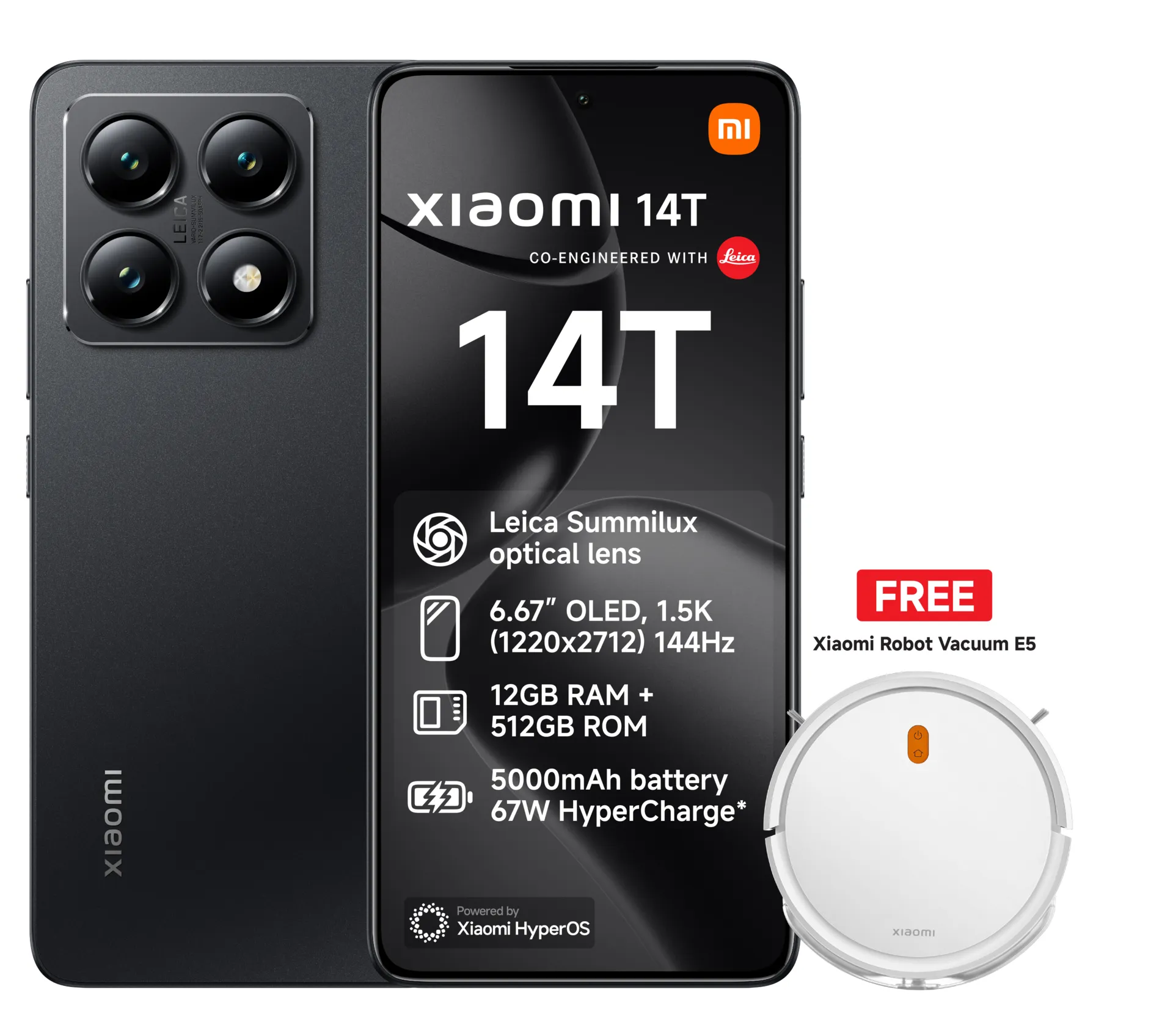 Leica Summilux optical lens. Sony’s IMX906 image sensor. Advanced AI Powered by Xiaomi HyperOS. MediaTek Dimensity 8300-Ultra. Next-generation 144Hz AI display. 67W HyperCharge. Long-lasting 5000mAh (typ) batterycharger. Charger,cable,elegantly tactile case in box.Â