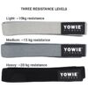 – Three levels of resistance allow progression and suit a variety of lifts. Light (White band, ~10kg), Medium (Grey band, ~15kg) & Heavy (Black band, ~20kg). Bands can be doubled or tripled up to add additional resistance