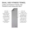 – When used dry: Works well as an ultra-lightweight sweat towel. Breathable material wicks moisture away and dries quickly. Unlike terry cloth towels, this towel retains much less sweat and odor. It is light enough to rinse and wring out in the sink after your workout