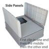 - Begin by unpacking the litter box and installing the two side panels. Each panel has 3 hinges that click into the base.