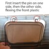 - Gently flex the door panel and insert the second pin into the corresponding hole on the opposite side. The door may initially be stiff, but it will loosen with use. Apply WD40 or another lubricant if needed.