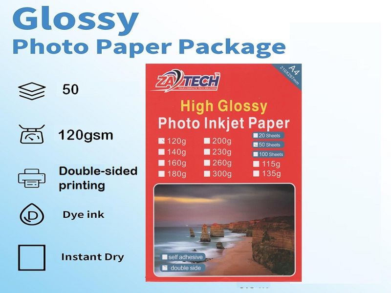 ZATECH A4 2 Side High Gloss Photo Paper 120 GSM – 50 Sheets