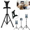 LIGHTWEIGHT AND EASY TO CARRY: ZF Tablet Tripod is Strong and lightweight aluminum makes it transports easily, A collapsible design(the handle rotates down, the legs contract, and everything folds in) creates a short, compact size, Making the provided zippered bag easy portability and safe storage.