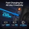 Operating continuously for 7h when AI tracker and built-in fill light are turned on. Operating continuously for 2h 20min when 2 magnetic fill lights and built-in fill light are turned on. Operating continuously for 26h when the stabilizer is in Standby Mode.Unleash your creativity