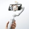 The light connects magnetically to the top or the bottom of the smartphone holder on the gimbal. Change colour of light with a light filter (four colour light filters are supplied).