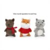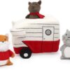 This interactive toy comes with 1 Retro Camper burrow and 3 small squeaky Miniz (Fox, Bear, and Wolf).